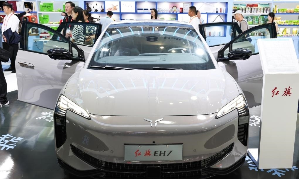 ?這是在第四屆中國國際消費(fèi)品博覽會上展出的紅旗新能源汽車(2024年4月13日攝)。新華社記者楊冠宇攝