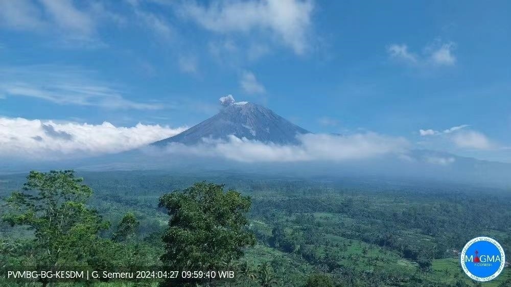 據(jù)印尼地質(zhì)研究機(jī)構(gòu)(PVMBG)消息,當(dāng)?shù)貢r(shí)間4月27日9時(shí)23分,印尼塞梅魯火山發(fā)生噴發(fā),火山灰柱達(dá)800米,噴發(fā)持續(xù)時(shí)間為120秒。