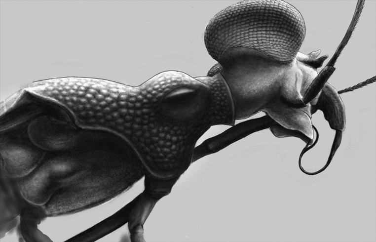 聲明說,研究人員在研究采自緬甸北部山谷一個琥珀礦的白堊紀中期化石標(biāo)本時發(fā)現(xiàn)了一種昆蟲,其眼睛尺寸異常大,體色圖案復(fù)雜,且有明顯擴展的盾片。此外,它的翅膀上有獨立的前緣脈和亞前緣脈。研究人員認為,這種昆蟲的顏色和獨特形狀也許可以威懾捕食者。
