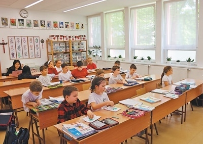 在匈中雙語學(xué)校的中文課堂上,當(dāng)?shù)貙W(xué)生正在上課。本報(bào)記者 劉仲華攝