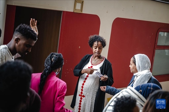 ?2023年9月9日,工作人員在埃塞俄比亞首都亞的斯亞貝巴拉布火車(chē)站為乘客檢票。新華社記者 王冠森 攝