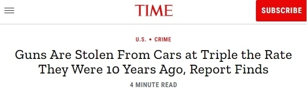中國(guó)日?qǐng)?bào)網(wǎng)5月17日電 綜合美媒報(bào)道,槍支管制倡導(dǎo)組織“為每個(gè)城鎮(zhèn)帶來槍支安全”(Everytown for Gun Safety)在對(duì)美國(guó)44個(gè)州337個(gè)城市的聯(lián)邦調(diào)查局(FBI)數(shù)據(jù)進(jìn)行分析后發(fā)現(xiàn),在過去十年中,汽車槍支被盜率增加了兩倍且連年攀升,汽車已成為全美最大的槍支盜竊來源。