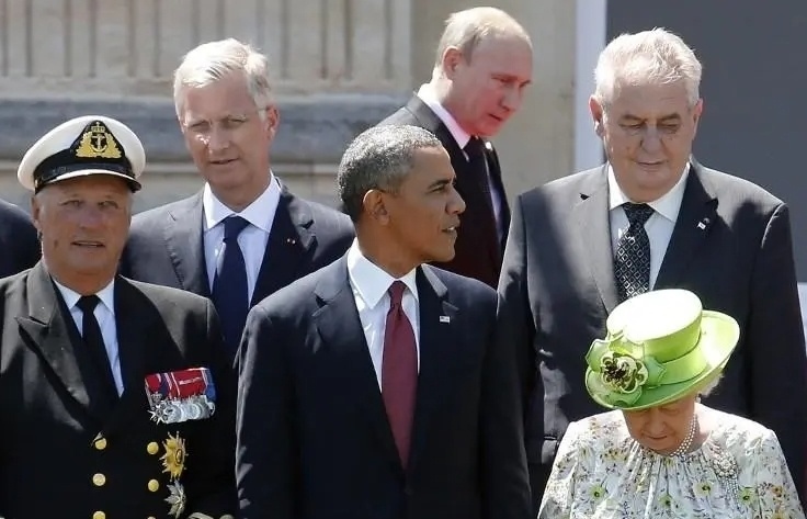2014年,諾曼底登陸70周年紀念活動上,俄總統(tǒng)普京與時任美國總統(tǒng)奧巴馬同框。