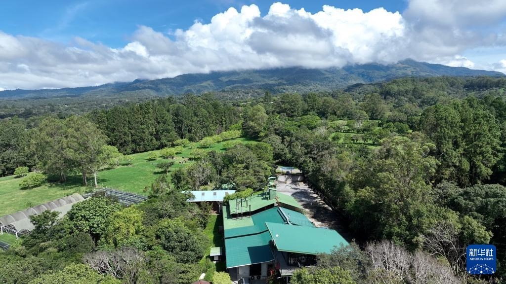 這是8月26日在巴拿馬西部城市博克特拍攝的咖啡莊園風(fēng)光(無人機照片)。