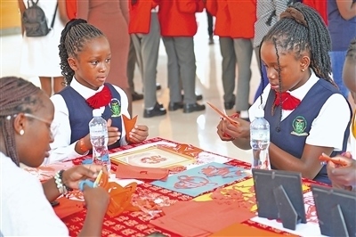 今年2月,在肯尼亞內(nèi)羅畢大學(xué)孔子學(xué)院舉辦的2024“歡樂春節(jié)之龍騰鼓躍鬧新春”活動上,當(dāng)?shù)貙W(xué)生體驗(yàn)中國剪紙。本報(bào)記者 黃煒鑫攝