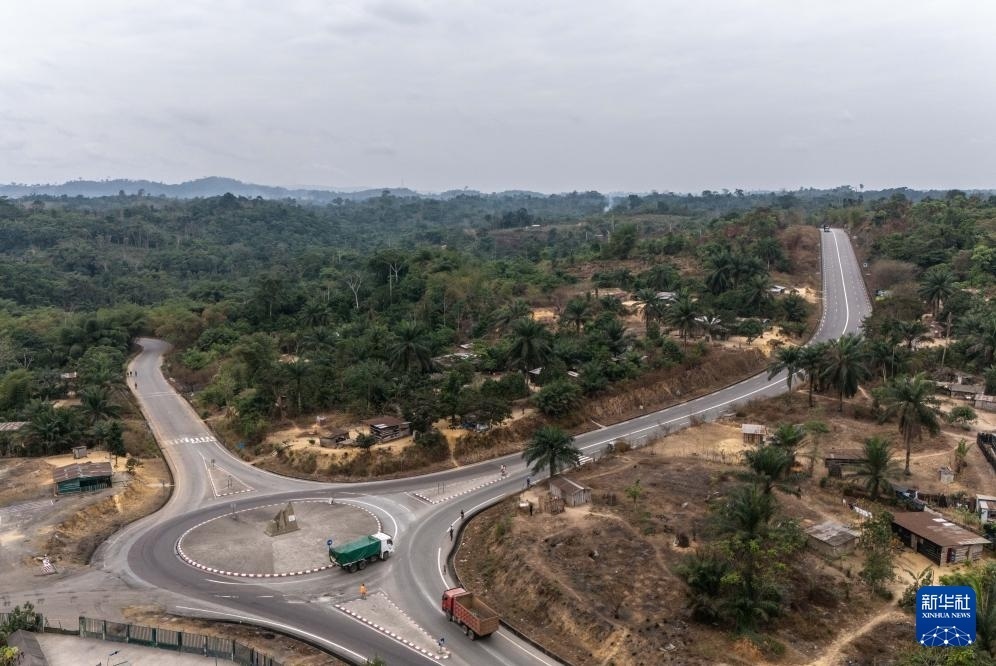 這是8月1日拍攝的連接布拉柴維爾和黑角的剛果(布)國家一號公路(無人機照片)。