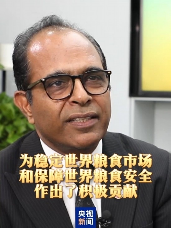 聯(lián)合國糧農組織駐華代表處代理代表 維諾德:中國的糧食產(chǎn)量連續(xù)9年穩(wěn)定在6.5億噸(1.3萬億斤)以上。這確保了中國國內糧食安全,為穩(wěn)定世界糧食市場和保障世界糧食安全作出了積極貢獻,也為實現(xiàn)可持續(xù)發(fā)展目標貢獻了重要力量。