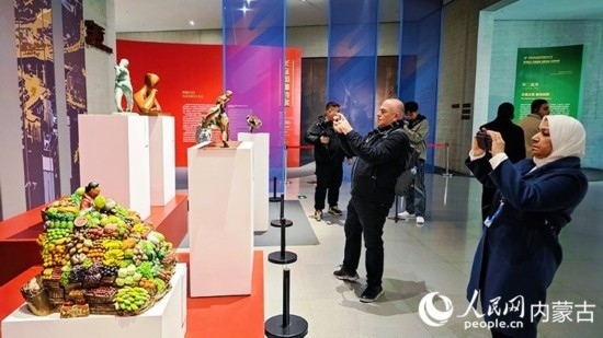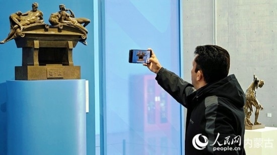外媒記者參觀呼和浩特雕塑藝術(shù)館。人民網(wǎng)記者 張雪冬攝