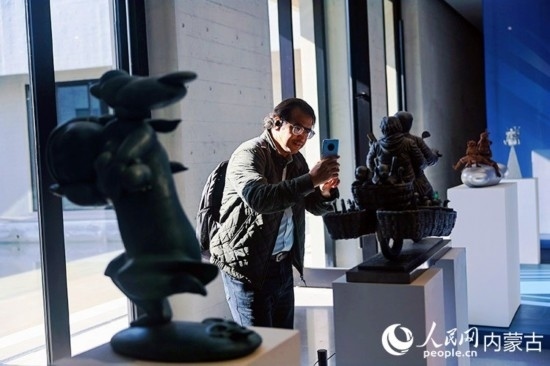 外媒記者走進呼和浩特雕塑藝術(shù)館。丁根厚攝