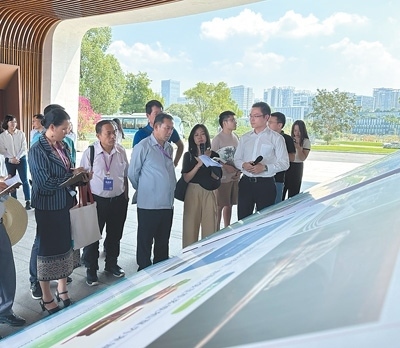 中老兩國(guó)記者采訪成都市鹿溪智谷綜合智慧能源項(xiàng)目。本報(bào)記者 孫廣勇攝