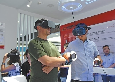 國際青年代表在玉門風(fēng)電場VR電力安全生產(chǎn)實(shí)訓(xùn)室體驗(yàn)。 圖為本報(bào)記者趙帥杰攝
