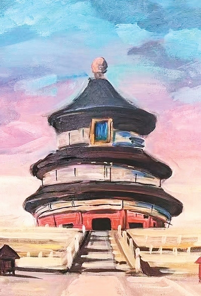 夕陽余暉中,新西蘭華裔青少年們在天壇祈年殿紅墻邊席地而坐,揮動畫筆,捕捉眼前美景?!跋﹃栂缕砟甑罡@壯麗,我希望通過我的畫筆展現(xiàn)出它的雄偉。”參訪團學(xué)生秦曉寓說。