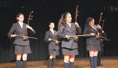 秘中學(xué)校的學(xué)生進行二胡演奏。本報記者 顏 歡攝