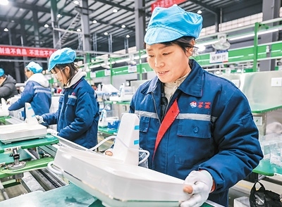日前,在安徽省馬鞍山市當涂經開區(qū)一家電子科技公司,工人在趕制首批出口科威特的智能小家電產品。