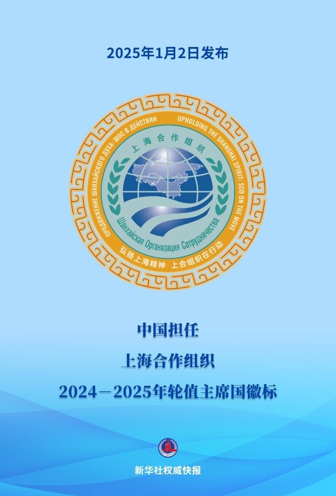 2025年1月2日,中國(guó)擔(dān)任上海合作組織2024-2025年輪值主席國(guó)徽標(biāo)發(fā)布。