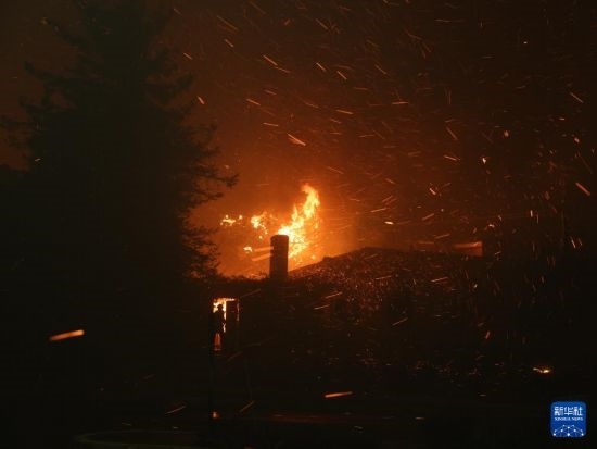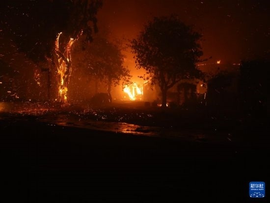 1月7日,在美國(guó)加利福尼亞州南部洛杉磯縣沿海社區(qū)帕西菲克帕利塞茲,野火吞噬房屋。