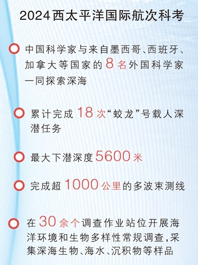 2024西太平洋國際航次科考由自然資源部中國大洋事務(wù)管理局統(tǒng)籌國家深?;毓芾碇行慕M織實(shí)施,是“數(shù)字化深海典型生境”大科學(xué)計(jì)劃下,首個(gè)在公海區(qū)域開展的聯(lián)合科考,也是首次有外國科學(xué)家搭乘“蛟龍”號(hào)開展深海科考。