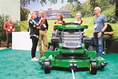 圖為在美國拉斯維加斯消費電子展上,人們觀看一款農用車輛。