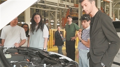 意大利青年在比亞迪西安工廠參觀。