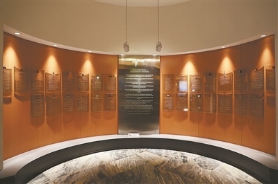 博物館展廳一側,弧形墻上懸掛著29塊玻璃匾,分別用與會國家和地區(qū)的文字鐫刻著萬隆會議十項原則。