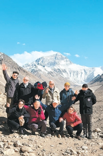 法國(guó)游客在西藏日喀則珠峰景區(qū)游覽。