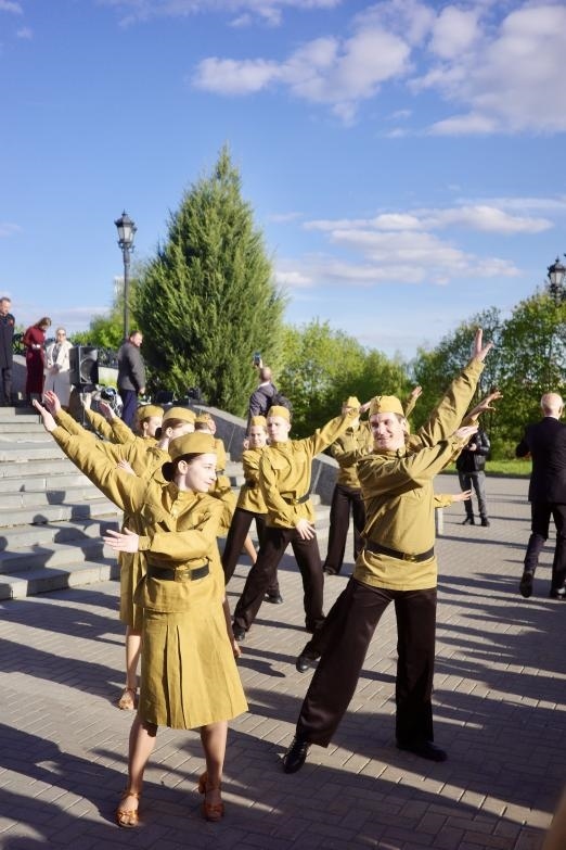 莫斯科勝利廣場,是1995年為了紀(jì)念反法西斯戰(zhàn)爭勝利50周年而建成。當(dāng)?shù)貢r間5月6日,勝利廣場上,當(dāng)?shù)啬贻p人穿上二戰(zhàn)時蘇聯(lián)軍隊的制服,在音樂聲中翩翩起舞,吸引了很多人駐足。劉少華 攝