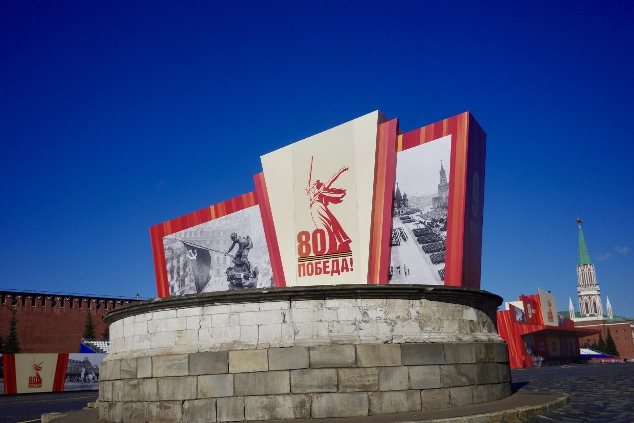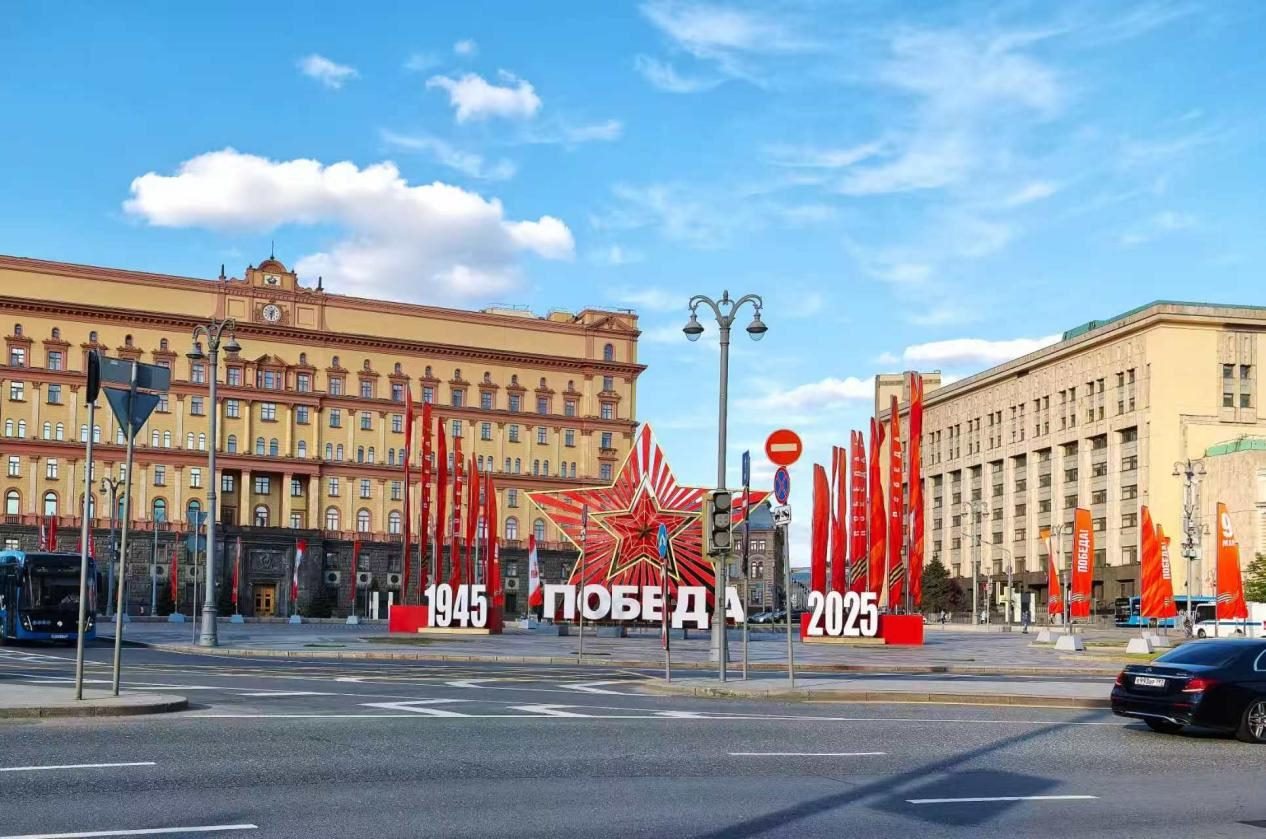 當(dāng)?shù)貢r間5月6日,莫斯科盧比揚卡廣場布置紀(jì)念蘇聯(lián)偉大衛(wèi)國戰(zhàn)爭勝利80周年的標(biāo)語。鄺西曦 攝