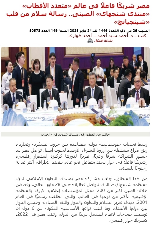 埃及《金字塔報》報道2025上合組織國家媒體合作論壇