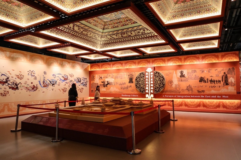 9月21日,與會嘉賓在第八屆絲綢之路(敦煌)國際文化博覽會上參觀敦煌文化主題展。