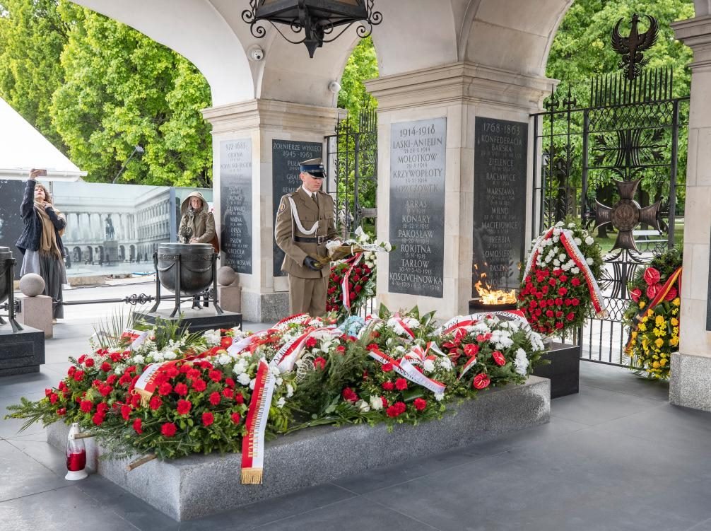5月8日,人們在波蘭首都華沙的無名烈士墓參加紀念活動。新華社記者 張帆 攝