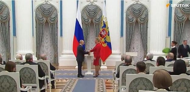 中新網(wǎng)12月25日電 綜合俄媒報(bào)道,12月24日,在克里姆林宮舉行的頒獎(jiǎng)儀式上,俄羅斯總統(tǒng)普京為俄羅斯外交部發(fā)言人扎哈羅娃頒發(fā)了“祖國(guó)功勛”勛章,并祝賀她生日快樂(lè)。