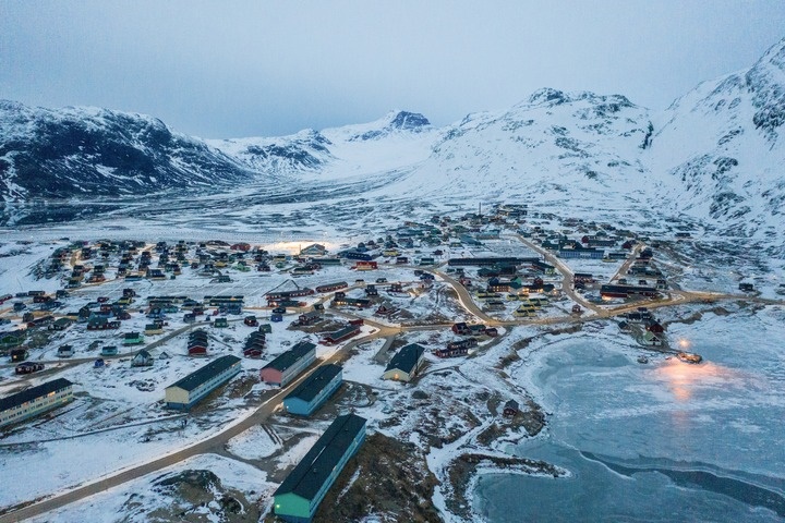 這是2025年3月21日拍攝的丹麥自治領地格陵蘭島納爾薩克鎮(zhèn)(無人機照片)。新華社記者彭子洋攝