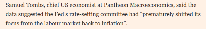 報(bào)道還援引萬神殿宏觀經(jīng)濟(jì)咨詢公司經(jīng)濟(jì)學(xué)家塞繆爾·湯姆斯的話稱,美國勞工部的數(shù)據(jù)表明,美聯(lián)儲(chǔ)聯(lián)邦公開市場(chǎng)委員會(huì) “過早地將注意力從勞動(dòng)力市場(chǎng)轉(zhuǎn)向了通脹問題”。