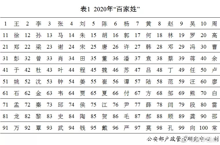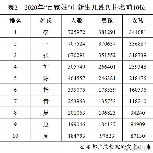 剛剛,公安部戶政管理研究中心二〇二〇年全國(guó)姓名報(bào)告發(fā)布。按戶籍人口數(shù)量排名,2020年的“百家姓”與2019年相比變化不大?!巴酢薄袄睢薄皬垺薄皠ⅰ薄瓣悺币琅f名列前五,五大姓氏人口總數(shù)占全國(guó)戶籍總?cè)丝诘?0.8%。截止到2020年12月31日,2020年出生并已經(jīng)到公安機(jī)關(guān)進(jìn)行戶籍登記的新生兒共1003.5萬,其中男孩529.0萬,占52.7%,女孩474.5萬,占47.3%。2020年“百家姓”中新生兒登記姓氏最多的是“李”,共72.6萬人。2020年出生并已經(jīng)進(jìn)行戶籍登記的女性新生兒中,使用頻率最高的10個(gè)名字依次為:“一諾”“依諾”“欣怡”“梓涵”“語(yǔ)桐”“欣妍”“可欣”“語(yǔ)汐”“雨桐”“夢(mèng)瑤”。與2019年相比,“一諾”“依諾”“欣怡”依舊位列三甲,“語(yǔ)桐”“可欣”“語(yǔ)汐”“夢(mèng)瑤”進(jìn)入前十。(記者 熊豐、任沁沁)