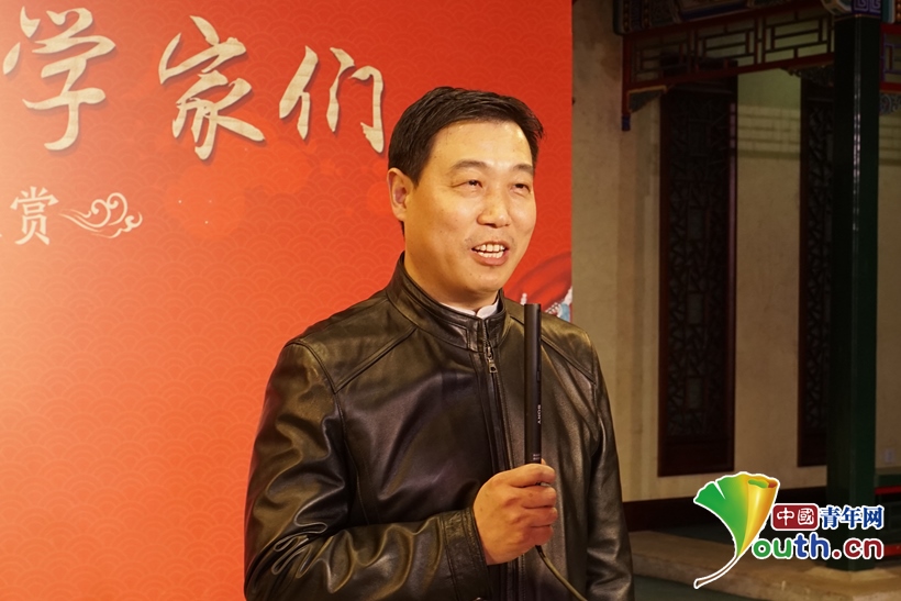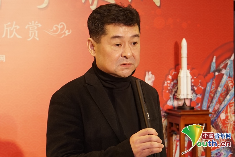圖為國(guó)家京劇院黨委書記、副院長(zhǎng)張亞峰向科技工作者送上新春祝福。中國(guó)青年網(wǎng)記者 楊晴 攝