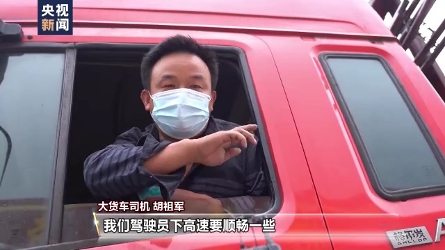 大貨車司機(jī) 胡祖軍:有這個長行碼了,駕駛員下高速要順暢一些,不會超過十分鐘的。