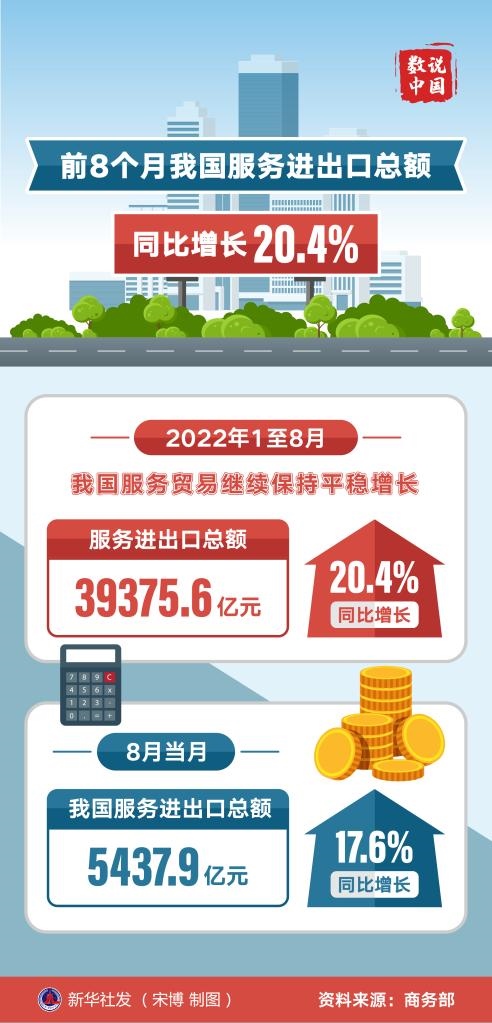 新華社北京10月12日電(記者謝希瑤)商務(wù)部12日公布數(shù)據(jù)顯示,今年1至8月,我國服務(wù)貿(mào)易繼續(xù)保持平穩(wěn)增長(zhǎng)。服務(wù)進(jìn)出口總額39375.6億元,同比增長(zhǎng)20.4%。