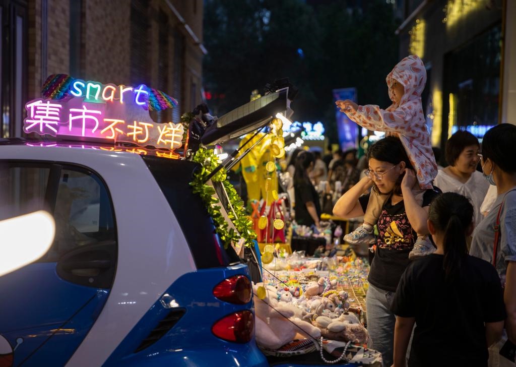 7月2日,游客在寧夏銀川市建發(fā)大閱城特色夜市購(gòu)物。當(dāng)日,第三屆“寧夏夜綻生活節(jié)”在寧夏銀川市建發(fā)大閱城中街拉開帷幕,吸引眾多游客前來(lái)體驗(yàn)城市夜生活。新華社記者楊植森攝