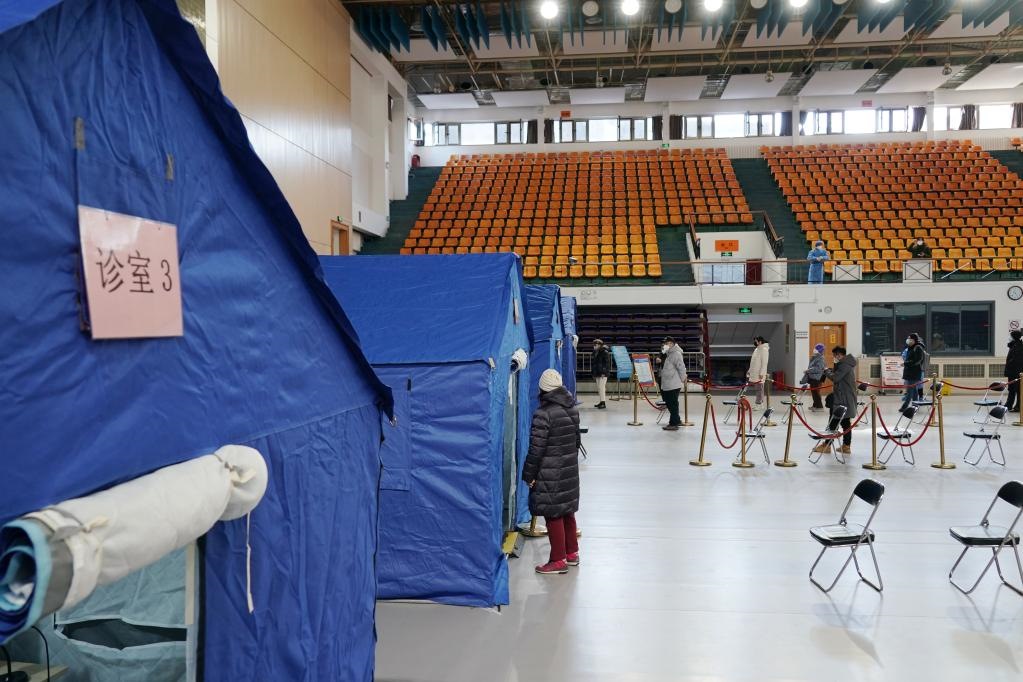 這是2022年12月24日拍攝的北京市西城區(qū)廣安體育館簡(jiǎn)易發(fā)熱門(mén)診。新華社記者 張晨霖 攝