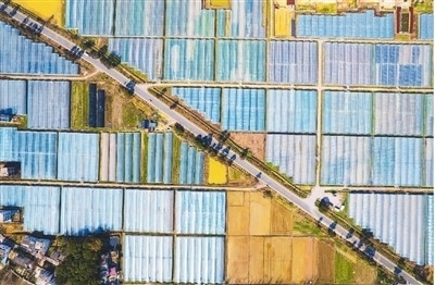 近年來,江西省贛州市贛縣區(qū)大力推進無公害蔬菜生產(chǎn),打造粵港澳大灣區(qū)蔬菜專供基地,推動蔬菜產(chǎn)業(yè)高質(zhì)量發(fā)展,助推鄉(xiāng)村振興。圖為2月22日,航拍贛縣區(qū)王母渡鎮(zhèn)濃口村集中連片蔬菜基地。 薛順鑫攝(人民圖片)
