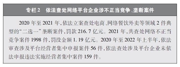 保障公平競爭的網(wǎng)絡(luò)市場環(huán)境。隨著網(wǎng)絡(luò)平臺企業(yè)不斷擴(kuò)展自身的體量和實力,“掐尖式并購”、無正當(dāng)理由屏蔽鏈接、“二選一”、大數(shù)據(jù)殺熟、流量挾持等妨礙市場公平競爭的問題也逐漸凸顯。中國積極回應(yīng)人民群眾訴求,在支持網(wǎng)絡(luò)平臺企業(yè)創(chuàng)新發(fā)展的同時,依法規(guī)范和引導(dǎo)資本健康發(fā)展,采取多種治理平臺競爭失序的執(zhí)法舉措。聚焦大型網(wǎng)絡(luò)平臺價格欺詐、低價傾銷等重點(diǎn)問題,通過行政約談、行政指導(dǎo)、規(guī)則指引等多種監(jiān)管手段,整治壟斷和不正當(dāng)競爭行為。圍繞民生、金融、科技、傳媒等重點(diǎn)行業(yè),依法審查涉及平臺經(jīng)營者集中案件,防止可能妨礙市場競爭和創(chuàng)新發(fā)展的并購行為,引導(dǎo)網(wǎng)絡(luò)平臺企業(yè)增強(qiáng)合規(guī)意識,規(guī)范自身經(jīng)營行為。通過一系列行動,平臺經(jīng)濟(jì)市場環(huán)境不斷優(yōu)化,公平競爭的行業(yè)生態(tài)穩(wěn)步向好,中小企業(yè)獲得更廣闊的發(fā)展空間,統(tǒng)一、開放、公平、競爭、有序的網(wǎng)絡(luò)競爭環(huán)境正在形成。