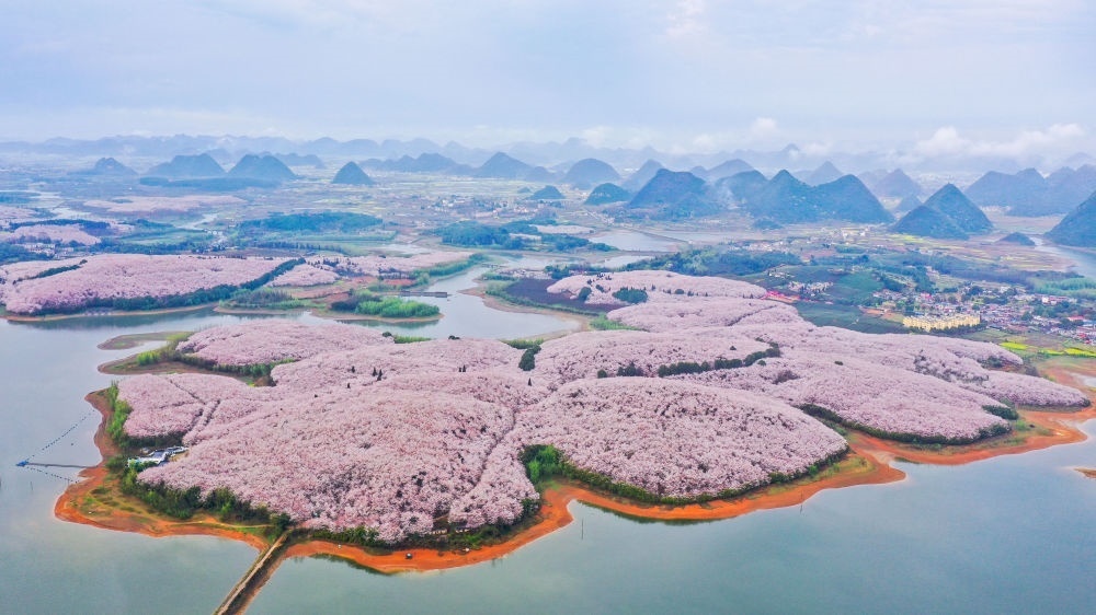 貴州省貴安新區(qū)櫻花園(無人機(jī)照片,2022年3月17日攝)。新華社記者 歐東衢 攝