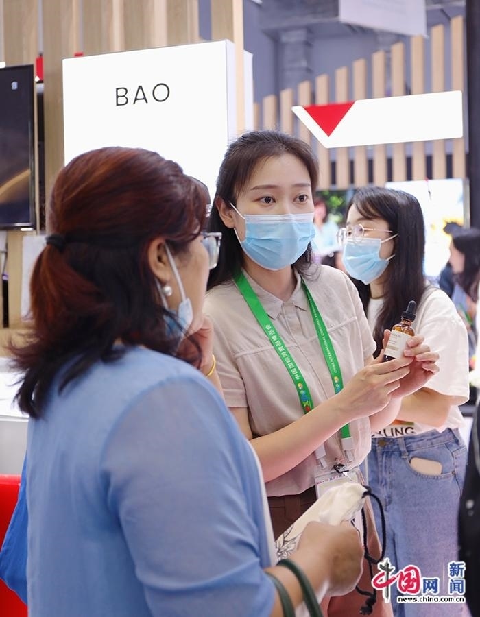 4月11日,工作人員為觀眾介紹護膚產(chǎn)品。中國網(wǎng)記者 吳亮 攝