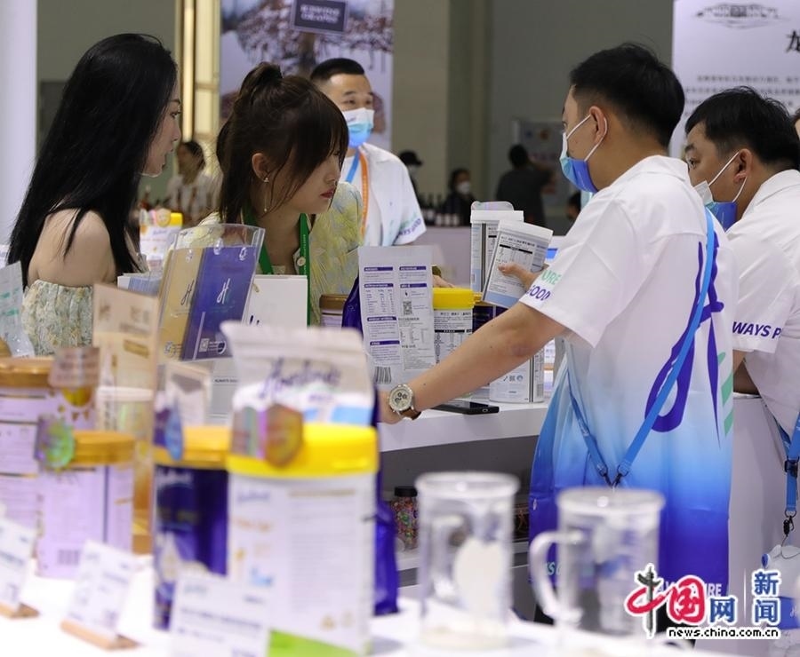 4月11日,工作人員為觀眾介紹新西蘭奶粉。中國網(wǎng)記者 吳亮 攝
