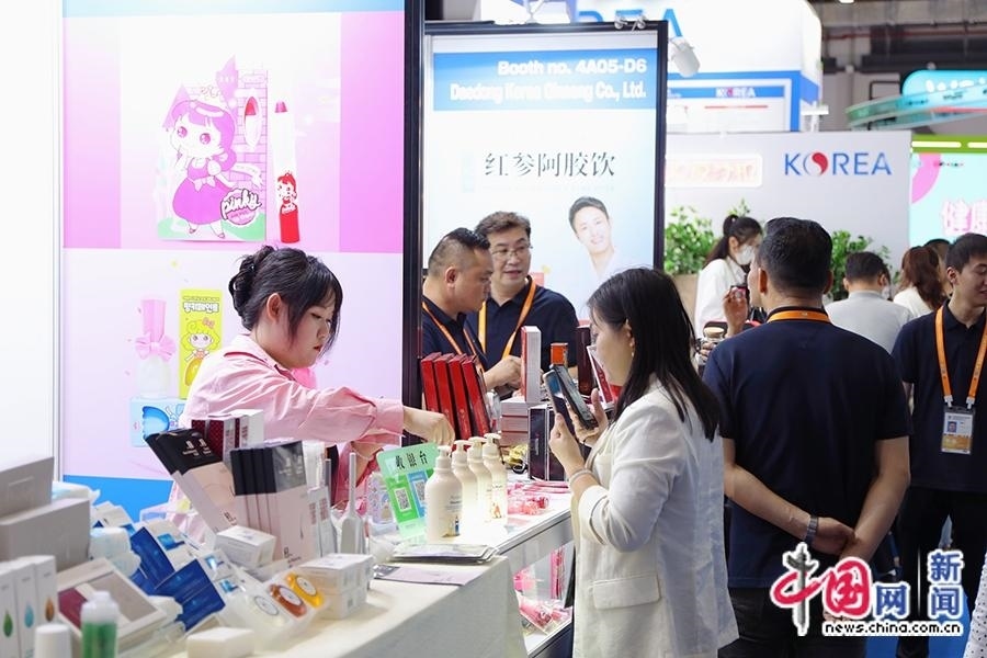 4月11日,工作人員為觀眾介紹韓國護膚品、化妝品和保健品等。中國網(wǎng)記者 吳亮 攝