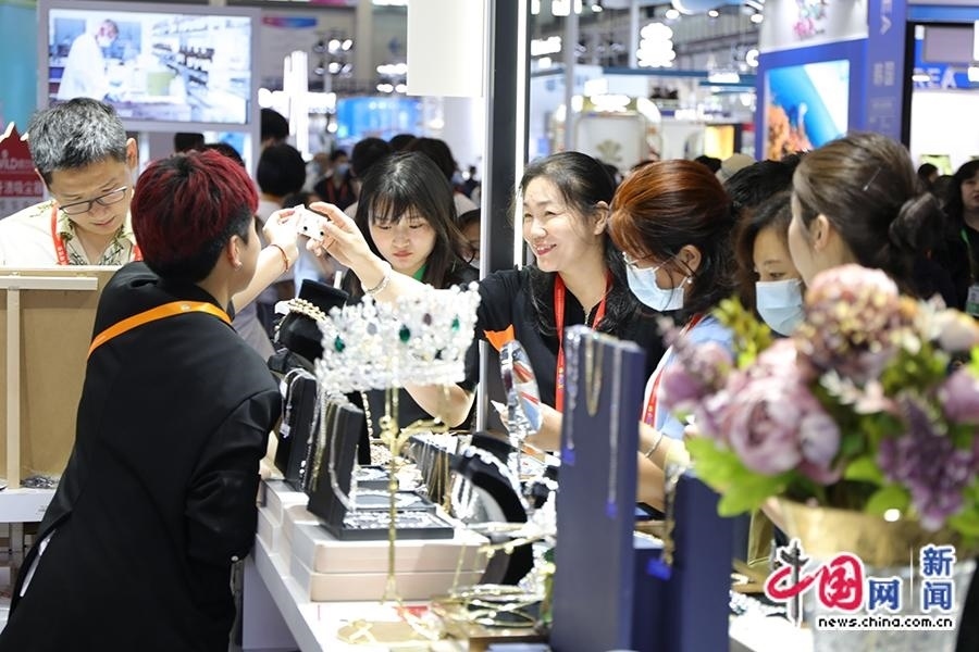 4月11日,工作人員為觀眾介紹耳環(huán)、項鏈等飾品。中國網(wǎng)記者 吳亮 攝