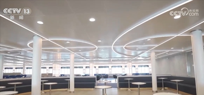 中國船舶集團(tuán)廣船國際副總經(jīng)理 周旭輝:這個船有7000平方米的公共活動區(qū)域,所有的裝修材料100%國產(chǎn)化,對本土的經(jīng)濟配套有很大的拉動作用。