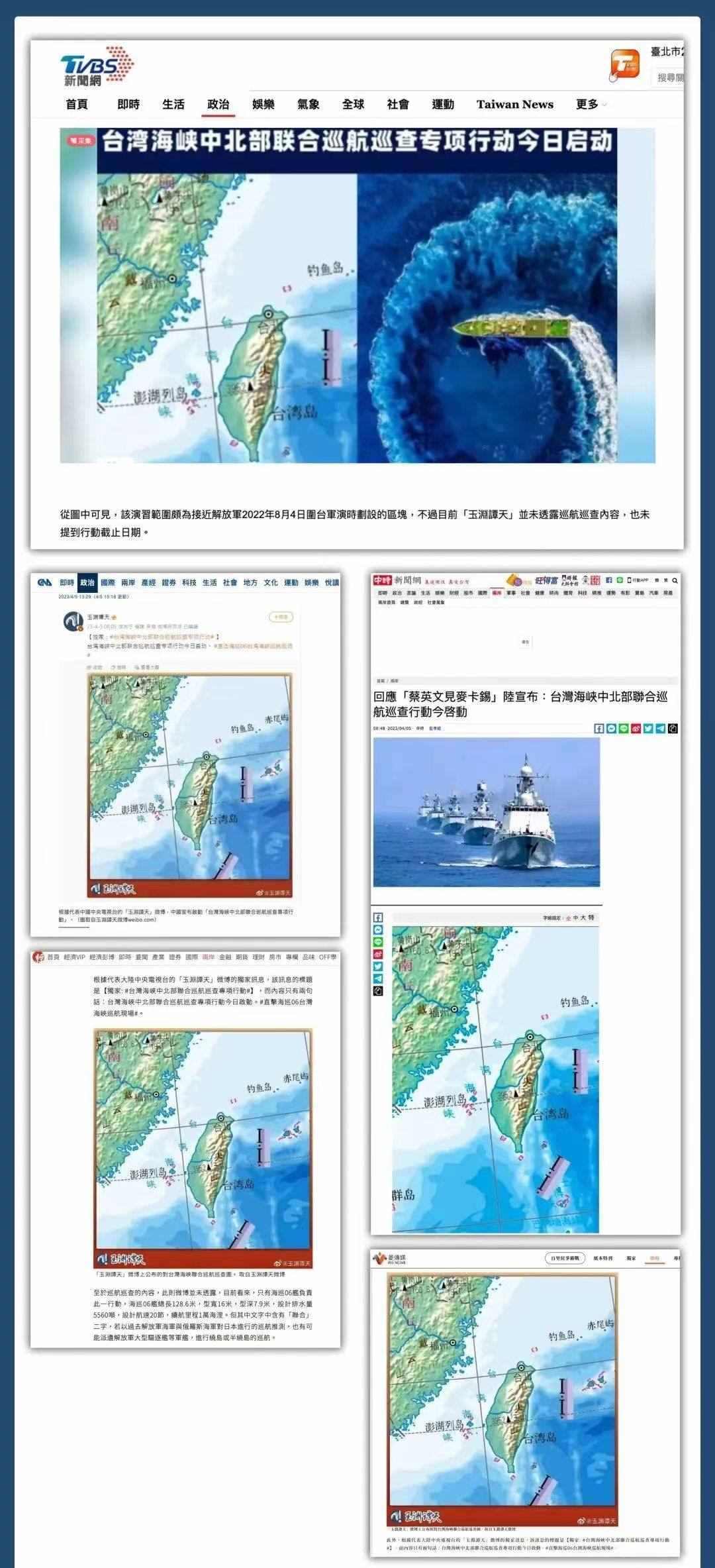 多家主流媒體轉發(fā)引用,消息瞬間傳遍全網。90余家臺灣媒體多平臺轉發(fā),揣測此次巡航活動及玉淵譚天配圖釋放的信號。臺當局就此消息進行緊急回應,美國之音也撰文評論。