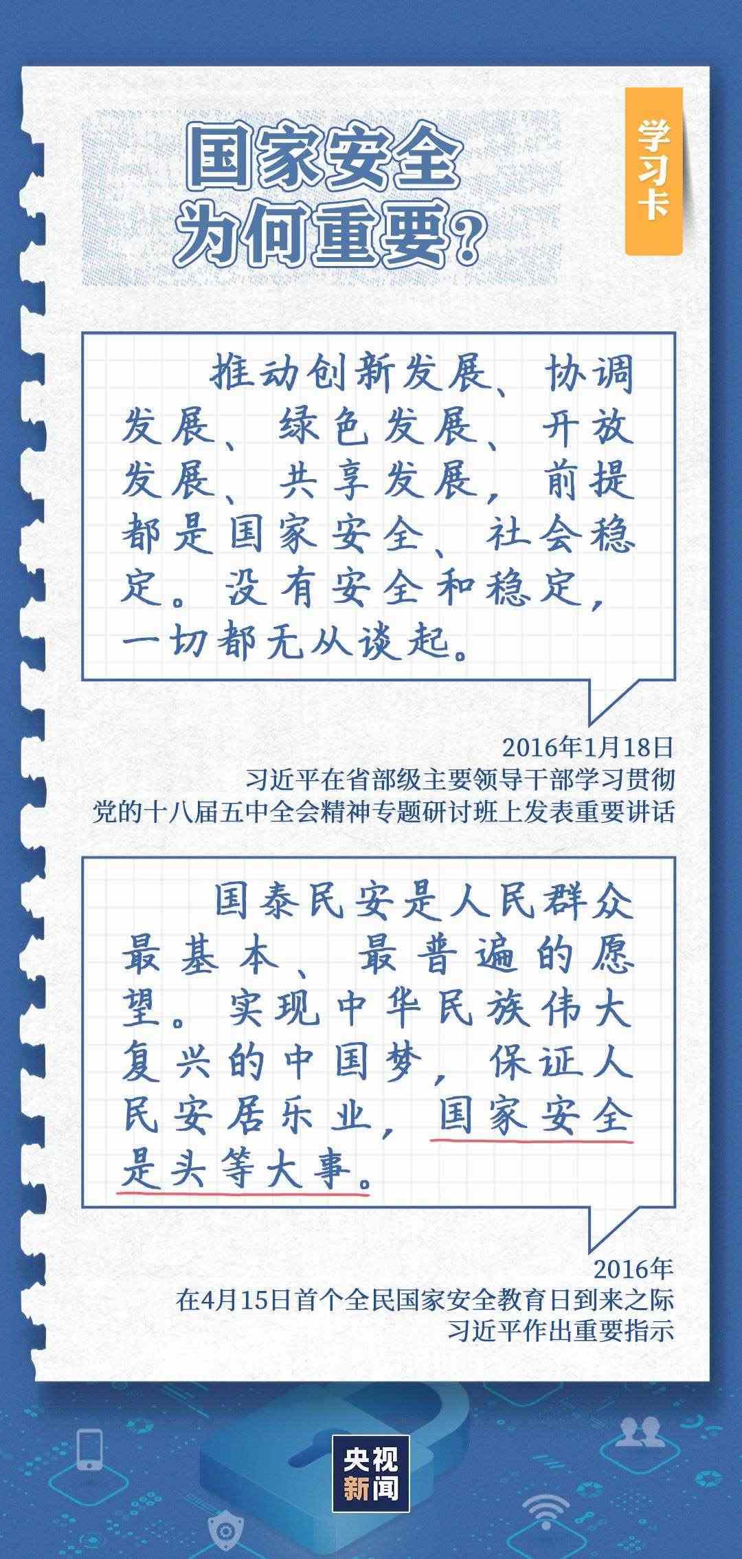 今天(4月15日)是習(xí)近平總書記首次提出總體國家安全觀9周年,也是全民國家安全教育日?!鞍捕煌?,存而不忘亡,治而不忘亂?!笨倳浽诓煌瑘龊隙啻螐?qiáng)調(diào),國家安全是國家發(fā)展的最重要基石、人民福祉的最根本保障。