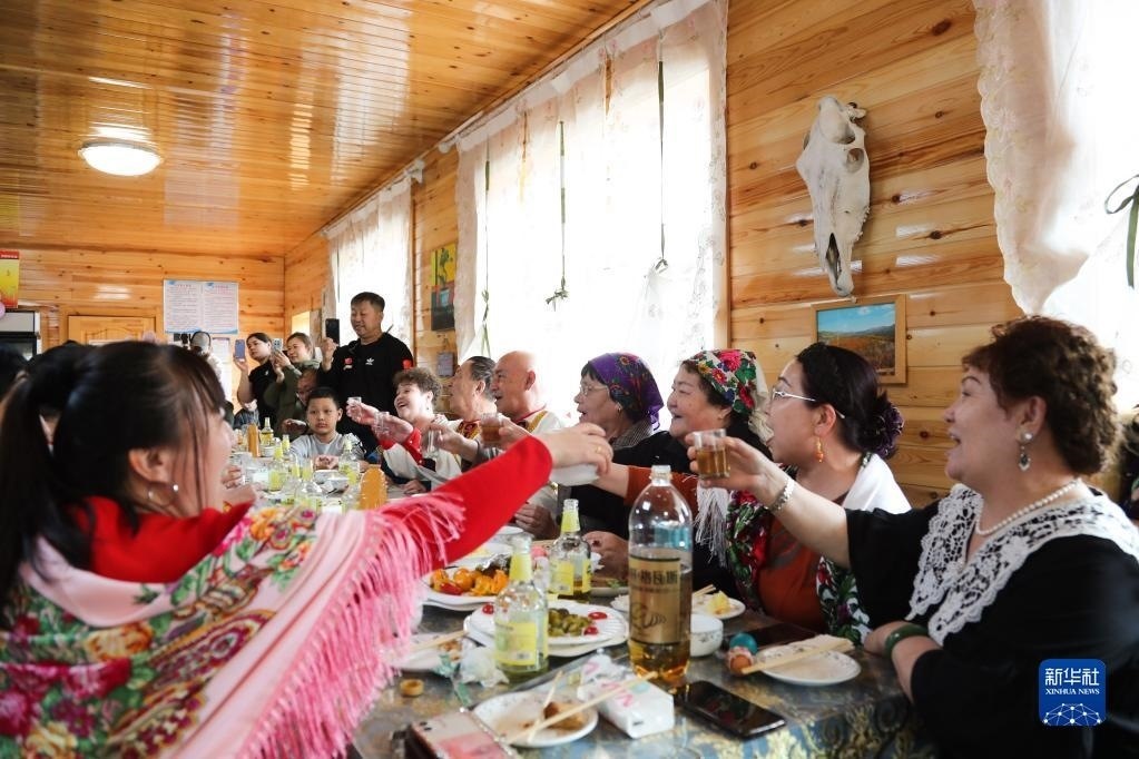 當(dāng)日,內(nèi)蒙古呼倫貝爾市額爾古納市恩和俄羅斯族民族鄉(xiāng)的俄羅斯族群眾穿著鮮艷的民族服飾,載歌載舞,歡度巴斯克節(jié)。已被列入國家級非物質(zhì)文化遺產(chǎn)名錄的巴斯克節(jié)是俄羅斯族一年中最隆重的節(jié)日,在為期一周的節(jié)日里,當(dāng)?shù)厝罕娖穱L美食、互相撞彩蛋、參加拔河、搶棍等活動。